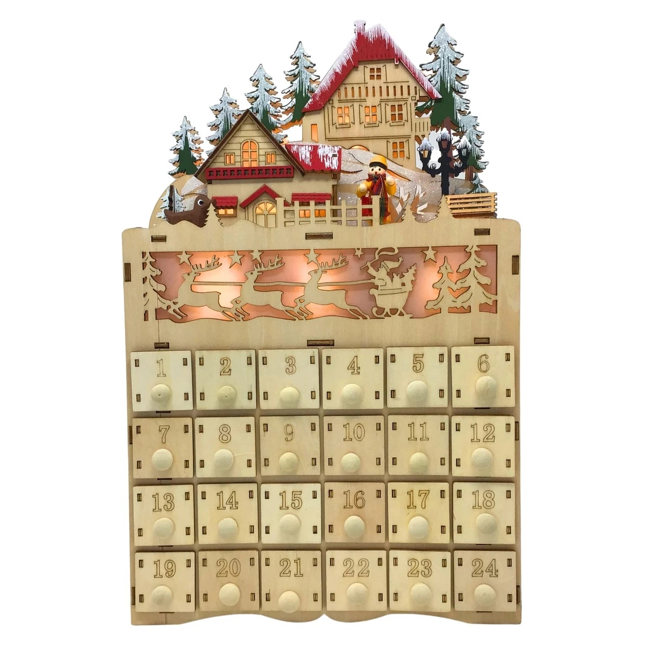 Get ready for a truly enchanting holiday season with our Light Up Advent Calendar featuring a Christmas Village and Santa with his reindeer in his sleigh! This wooden masterpiece stands tall at 14 inches and is the perfect way to count down the days until Christmas. Each of the 24 drawers can hide a special surprise or treat, and the intricate Christmas Village scene comes to life with a warm and inviting glow. Imagine the magic and excitement on your children’s faces as they open each drawer and watch the village come to life. It’s the perfect addition to any home, office, or classroom during the holiday season.