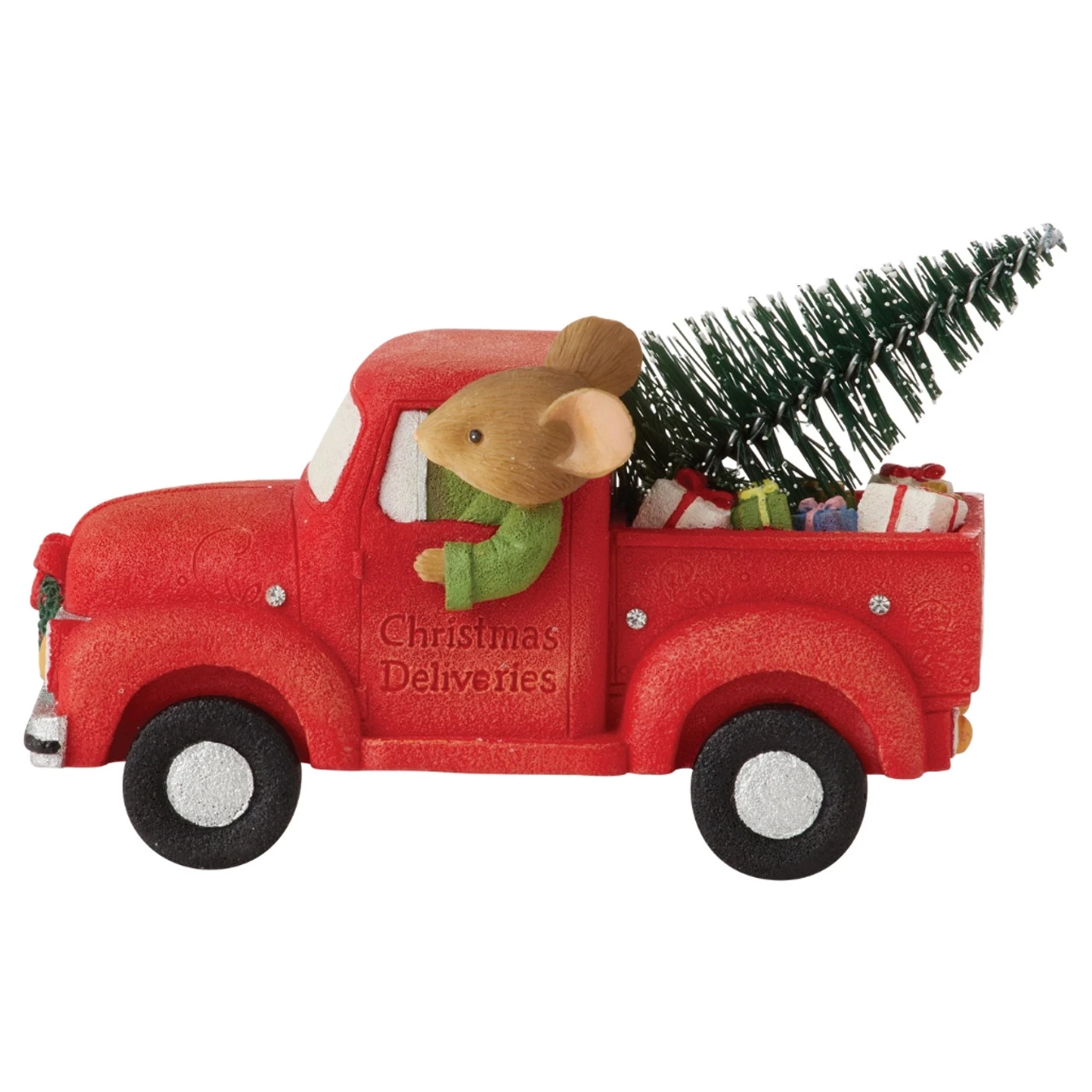 Introducing the Heart of Christmas Christmas Delivery, a delightful 2.28in H figurine from our enchanting Tails with Heart Collection! Steering down snowy streets, our plucky mouse is on a heartwarming mission to spread holiday cheer by the truckload. Piloting a festive, wreath-adorned red pickup, this tiny hero delivers beautifully wrapped gifts and twinkling trees to every corner of the town. Crafted from premium stone resin and adorned with dazzling crystal accents, this piece will surely sparkle in your home.