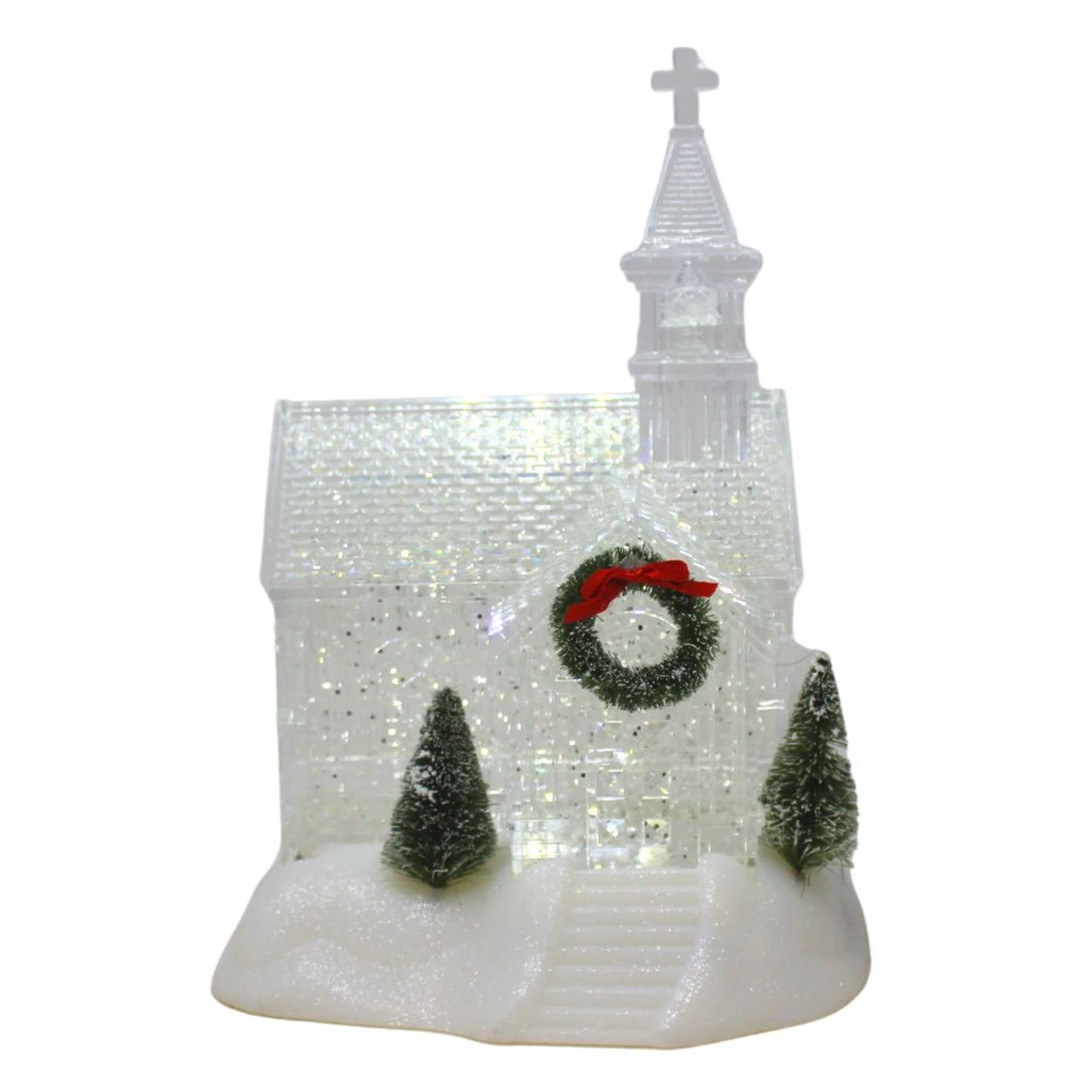 Bring the Christ back into Christmas with this beautiful clear acrylic church water shimmer. Insert 3 AA Batteries (Not Included) or plug in the included USB Adapter cord and watch as the church lights up with a warm glow and glitter begins swirling inside.