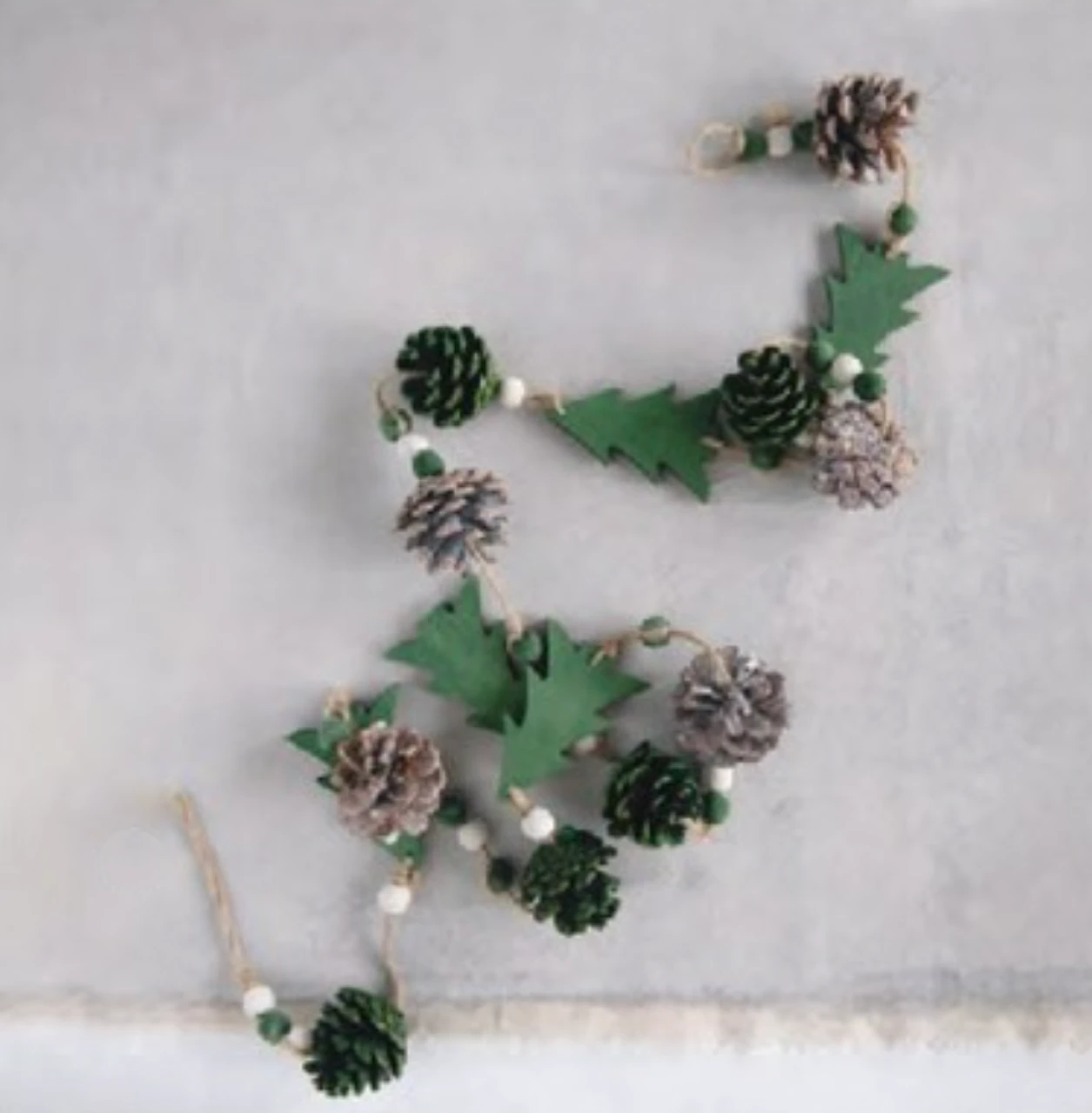 Show your holiday cheer with this wonderful Trees and Pinecones Garland. A festive addition to your holiday decor. The perfect accent for your fireplace mantel, banister, window or decorative centerpiece.