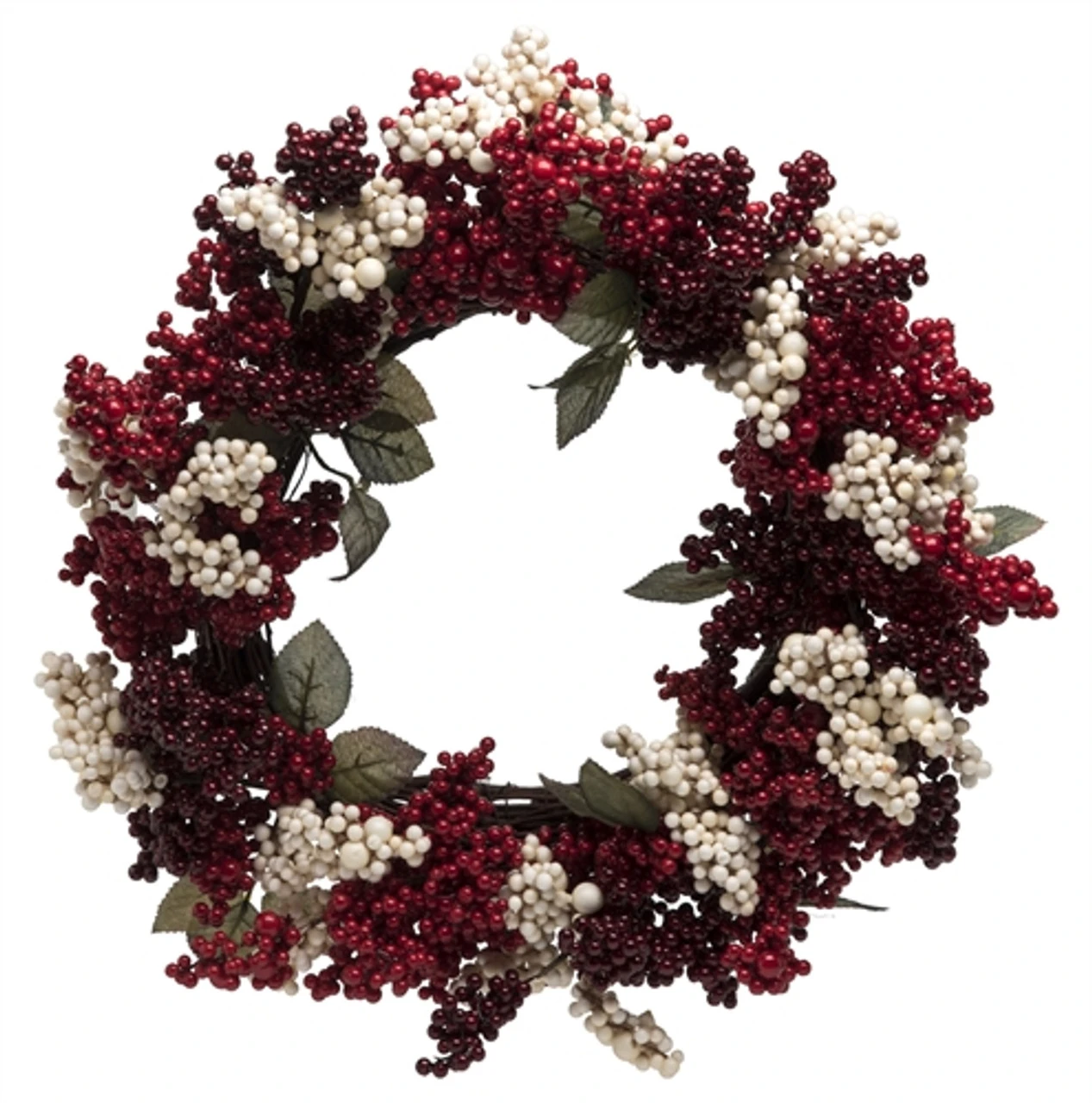 Create a warm, festive winter holiday home with this White & Red Berry Wreath. Whether you hang it on your door, or use it as a tabletop decoration, this wreath features plump red and white berries, with green foliage, that will add just the right amount of color to your holiday décor.