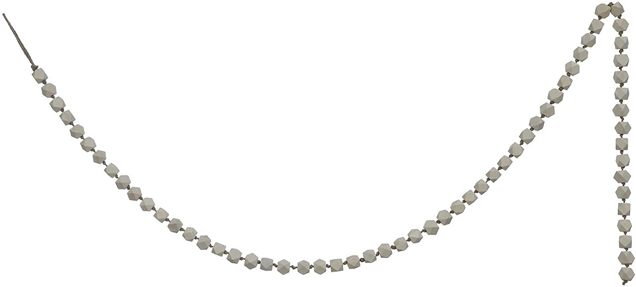 Complete your tree or holiday display with this unique White Wood Bead Garland. The perfect accent for your fireplace mantel, tree, window or decorative centerpiece – so versatile it can can be used all throughout the year.